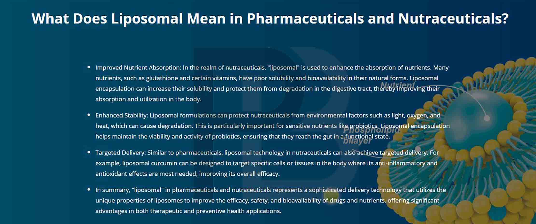 While standard Berberine has been used for centuries to treat bacterial diarrhea and gastrointestinal infections, it has a major drawback: poor absorption in the intestines.What is the Advantage of the "Liposomal" Form?Standard Berberine Hydrochloride is notoriously difficult for the body to absorb...